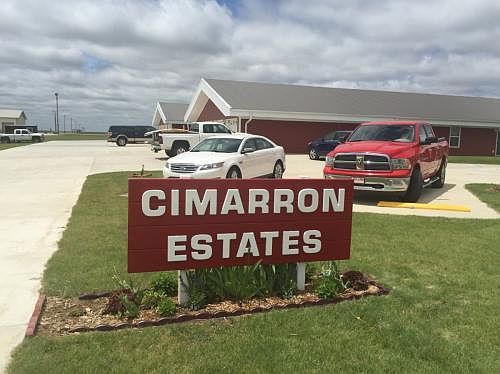 The Cimarron Estates apartment complex has 12 large 1300 square foot two bedroom two bathroom apartments. Each Apartment has a full kitchen, laundry room, and ample storage. Utilities are included in rent. A large 30' deep attached garage is also included for each apartment. large public rooms are available for resident's use. A reinforced concrete storm shelter at ground level is provided for residents' use. complex is all at ground level for easy access by those with reduced mobility. All utilities (water electric gas sewer trash) included in rent
