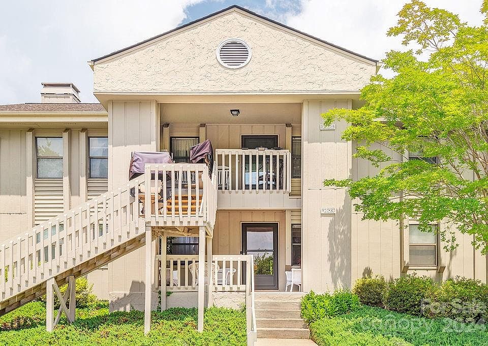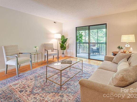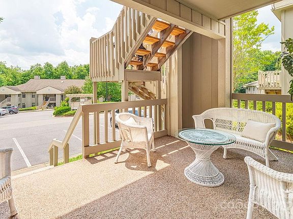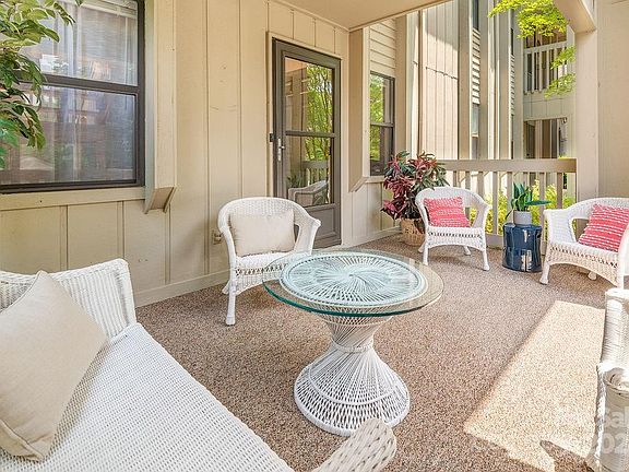 The Cloisters Community offers idyllic condo living in a prime East Asheville location close to DT Asheville & Black Mountain. This beautifully maintained first-floor condo is move-in ready & offers one-level living at its finest! Enjoy outdoor living on your huge covered front porch while soaking up the Western sunsets. This 2 bdrm/2 bath unit has been beautifully updated w/ hrdwd flrs, hardware/fixtures, fresh paint, kitchen w/breakfast nook, granite counters & tile flrs. The oversized primary suite has an ensuite w/ renovated bath & tiled walk in shower $ 2 large closets. The living room has a gas FP & leads to a private screened porch overlooking peaceful greenspace. This spacious condo lives large w/ tons of storage. This quiet walkable community has so much to offer. Amenities incl. pool, clubhouse, tennis/pickleball courts. No STR, no dogs/only cats allowed. Only mins. to golf courses, The WNC Nature Center, parks, shopping, restaurants, & the Blue Ridge Parkway. Agent owned.