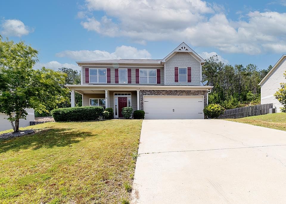 Just behind Ft. Benning's Sand Hill is the wonderful community of Lexington Hills. This 4BR/2.5BA has many wonderful features & upgrades.Upon entering foyer you see the recently painted formal dining room which opens to the spacious kitchen.Enjoy cooking in a kitchen featuring granite countertops, tile backsplash, & easy to clean tile flooring while overlooking great room.Functional desk space located in kitchen for the virtual learning or WFH days.Park in the 2car garage bc you have a huge storage building built on site with true foundation.Upstairs find the bedrooms, full baths & laundry room. Master BR has en suite with sep tub and shower, dual vanity & walk in closet. Brand new shower in hall bath.New flooring in front left bedroom. NO CARPET! Enjoy time off relaxing on the covered front porch or in the fenced back yard, or venture down to community area to take a dip in the pool or fish on the dock.Neighborhood also has a private clubhouse that can be reserved for private events.
