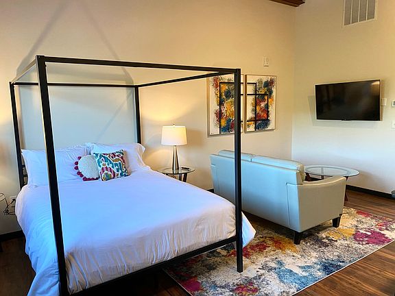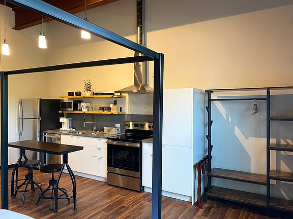 Luxury furnished studio apartment Includes utilities and internet, 3 months or longer lease considered. Amenities: Designated parking spot, secure entrance, 13' ceilings, full size appliances including washer and dryer, luxury linens and queen size bed, furnished kitchen. Just unpack and stay. Background check and income requirements All utilities and internet included. Month to month lease options. No smoking or vaping, parties, or pets.