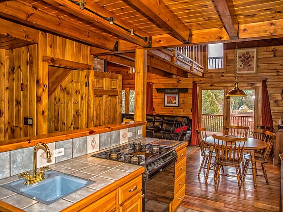 Nestled on over 3 acres of peace and tranquility with mountain views this stunning Log Home boasts a ceramic tile kitchen with 3 sinks, first floor laundry, and vaulted ceilings. The double layer deck offers a nice place to sit and enjoy the view or entertain lots of people. Don't miss it, at only $314,900 this one won't last.