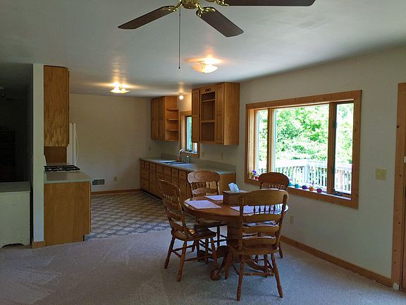 This charming property is a hidden jewel perched on 5 wooded acres at the 2nd highest point in Mackinac County. Views of woods & peeks of water surround you in this 2+ bedroom, 2 bath home. The first level of the home has a space that is currently a 1 bedroom, 1 bath efficiency apartment but would be perfect for a mother-in-law suite or transform it into a studio or workshop. (It could easily be made into part of the main living space.) There is also a laundry room & 1.5 car garage. The upper level hosts the main living area including 2 bedrooms, a large bathroom, 2 bright & cheery bedrooms. It has a large living/dining area full of windows & light and a pretty galley style kitchen. There is wonderful space outside on a balcony deck off of the dining room & a private back yard.