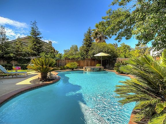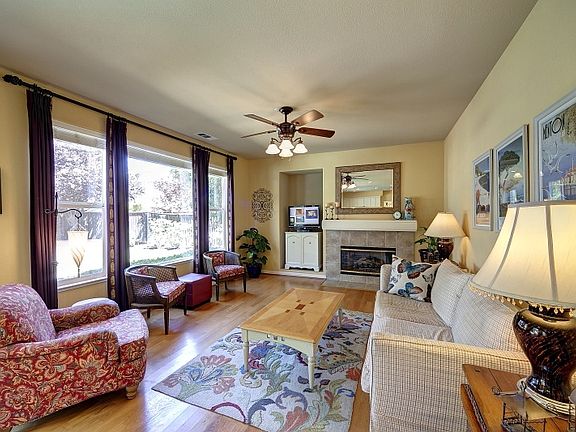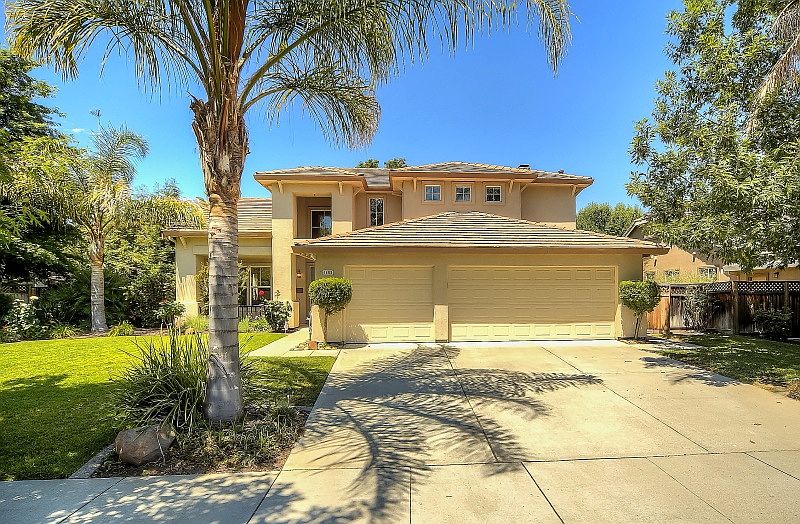 This warm and inviting property with its bright, open, spacious floor plan is the place you want to call home! Lush front yard landscaping and welcoming front porch design beckon you to explore further. Updated kitchen featuring antique white cabinets, extra large stainless steel sink, granite counters and an attractive island, opens up to a charming family room where fond memories are sure to be created. Roomy hallway and landing areas are most appealing as they offer extra cabinet storage. This backyard is truly an entertainer's paradise! Ambiance abounds with stamped concrete patio, flagstone paths, palm trees, outdoor kitchen, beautiful built-in gas fire-pit and sitting area accented in brick. Sheer descents cascade from the raised hot tub area into the salt-water, solar heated pool.