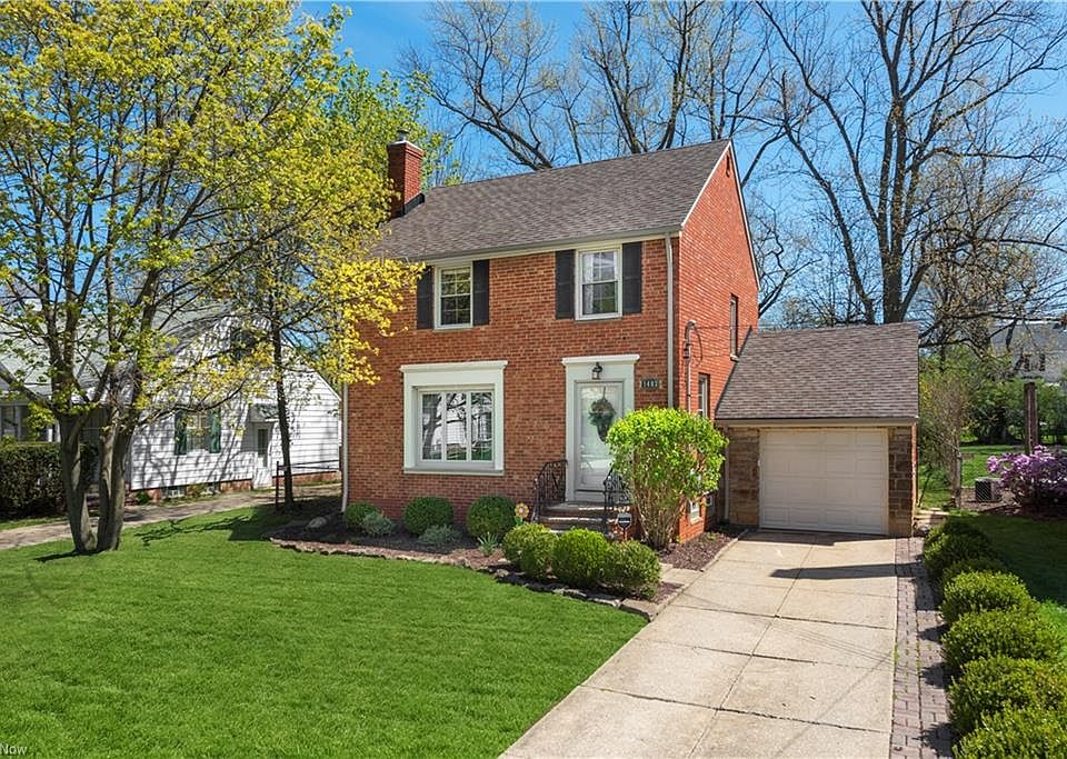 Welcome to this classic Lyndhurst colonial located on Churchill Rd. The exterior offers abundant curb appeal with red brick, attached stone garage, and deep flower beds. The interior has been strategically & thoughtfully updated with white woodwork, taupe walls, and features original hardwood floors in the main living area and dining room. The family room has large windows & Napoleon wood fireplace. The dining room has direct access to the back deck. The kitchen has been fully updated with grey & white color palette. The granite countertops continue up the backsplash and flow well with the grey wood-illusion tile floors. Newer appliances are stainless steel, including the convenient undermount kitchen sink. All three bedrooms are located on the second level and have large windows & hardwood floors.The finished basement allows for extra entertaining space and features an illusion stone fireplace and the second full bathroom. The large back deck is a notable feature with a unique custom shape and built in benches. The backyard is lush & spacious and can be built out to suit all of your outdoor entertainment goals. This neighborhood is family oriented and just a few minutes walk to Lyndhurst pool. Additional amenities include a newer commercial grade hot water tank, new gutter downspouts with leaf guard, and an electric car charging outlet installed in the garage.