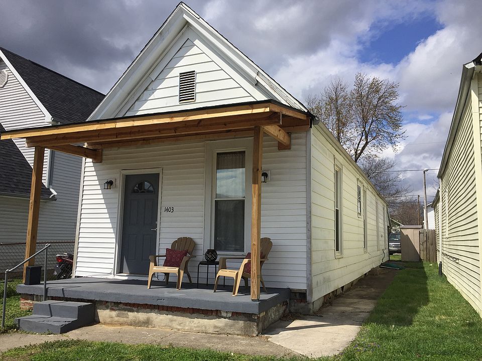 SUPER CUTE 2 Bed 1 Bath Home located in downtown New Albany! Enjoy your morning coffee on the adorable covered front porch! Check out this Kitchen with Newly installed UPGRADED CABINETRY, New Countertops, New Lighting, and a fresh coat of paint! Appliances to remain include; fridge, stove/hood, stackable washer/dryer! Step outback to a covered patio and entertaining area out of a magazine! It features a unique burnt wood privacy fence completed with an old wooden door for access to parking out back. It's Freshly Landscaped and ready for all of your summer BBQ's! Seller offering a 1yr-Home Warranty.MOVE IN READY!!! Don't wait CALL TODAY as this one won't last long!
