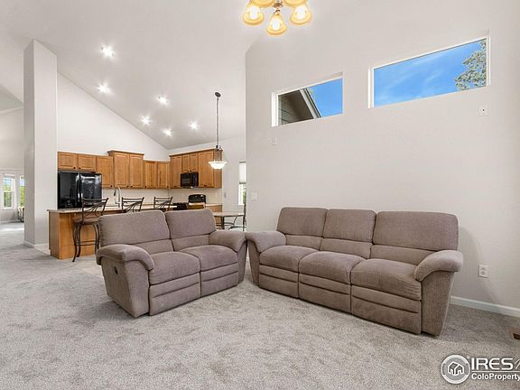 Welcome to this spacious 4-bedroom, 4-bath home situated on a cul-de-sac corner lot in the desirable Registry Ridge neighborhood. With fresh interior paint, brand-new carpet on the main level and upstairs, newer kitchen appliances, and updated window blinds. Step inside to soaring vaulted ceilings and an abundance of natural sunlight that fills the open-concept living spaces. The main floor features a generously sized primary suite with a 5-piece bathroom and a spacious walk-in closet-your own private retreat. Downstairs, the fully finished basement adds incredible versatility with a large second living area, a fourth bedroom, a full bathroom, and a flexible bonus space perfect for a home gym, office, or hobby room. Enjoy the large corner lot with room to relax or play, and take full advantage of Registry Ridge's amenities, including a community pool, clubhouse, basketball and tennis courts, playgrounds, and miles of scenic trails and green spaces. With its prime southwest location, you'll have quick access to both Fort Collins and Loveland, plus easy routes to the foothills for weekend adventures. This home offers the perfect balance of comfort, style, and convenience-don't miss it!