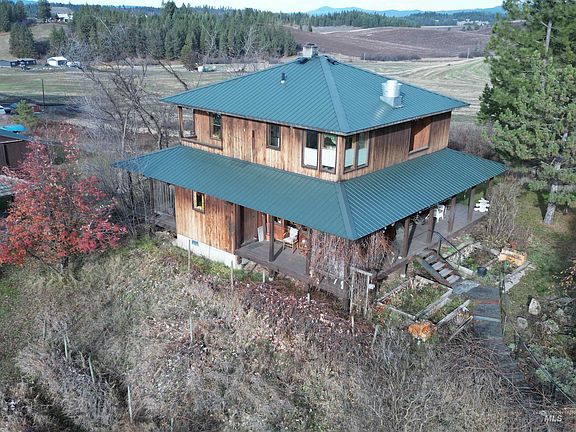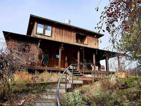 A home built in harmony with its natural surroundings. Extensive windows, balconies and a wrap around porch help to integrate the outside into this spacious 1 bedroom home. A large chefs kitchen with plenty of counter space to process the bounty from the extensive gardens and orchards on 5 acres with panormic 360 views. Upstairs is dedicated to the bedroom suite with plenty natural light, mountain views, large master bath with soaking tub and sauna. Expecting company? A 250 sq/ft detached bungalow with half bath has plenty of room. Plenty of updates including new steel roof, well and septic upgrades, wood stove, etc... Garage/shop is 220 ready. Separate storage shed houses heated well room, new pump in 2018 provides 20 gpm. Additional 25 acres MLS 98894691 surrounding property available through the neighbor.