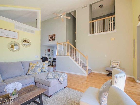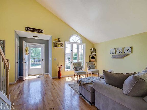 Beautiful 1.5 story home in desirable Tramore Subdivision! Tons of natural light throughout. Main level features wood flooring and vaulted ceilings. Stainless steel kitchen appliances stay with the home! Main floor family room with cosy wood burning fireplace. Upstairs master bedroom has cathedral ceilings, laminate flooring, and large master bath. 2 additional bedrooms and full bath also upstairs. Finished basement with gaming area and bar, as well as a media room. Additional finished room for home gym or storage. Fenced, landscaped backyard with large deck! Unit 5 schools, including Prairieland Elementary. Roof new in 2013, AC 2012.