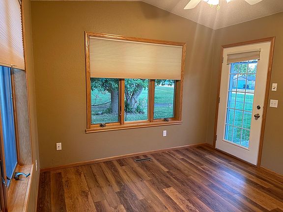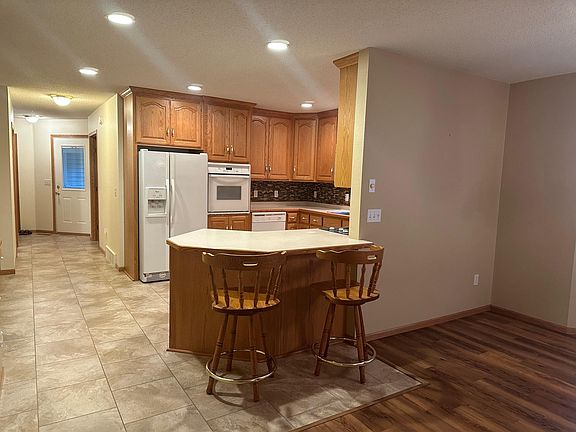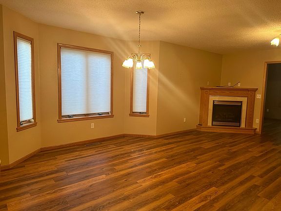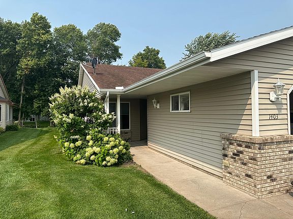 Well maintained and move in ready, this spacious two bedroom two bath townhome has steel siding, patio with privacy fence off sun room in the back, welcoming front porch and gas fireplace in the living room to name a few features! Large pantry/mud room closet, laundry room with built in ironing board and kitchen with cabinets raising to the ceiling for tons of storage. Breakfast bar in kitchen opens to dining and living room and all appliances stay! Insulated and finished garage for parking and storage! Association fee of $100 a month covers lawn care and snow removal. Located just N of grocery store, bank, gas station and restaurants for convenient location. More/new photos coming soon - live for showings 9/18!