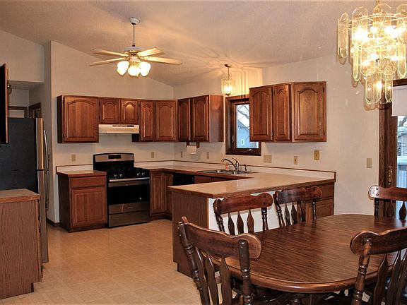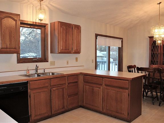 Affordable 1992 solid built rambler with spacious rooms, large eat-in kitchen featuring oak cabinetry, new stainless steel appliances. The dining room provides plenty of space for entertaining. There are patio doors that open up to a huge deck with views of mature trees. This home also also features 2 main level bedrooms with large closets and 2 windows. Main level also features a walk through full bathroom and main floor laundry just off of the kitchen. A finished lower level for a family room, ample space for a piano and/or sitting area and a 3/4 bath with walk in shower. This home also features a 2016 roof, vinyl windows and siding, forced air, central air and air exchanger and attached 2 stall garage.