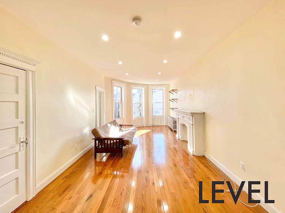 *NO FEE* *OPEN HOUSE BY APPOINTMENT ONLY. PLEASE CALL, EMAIL OR TEXT TO SCHEDULE A VIEWING TIME.* Looking for a *NO FEE* 3BR/1BA renovated apartment in Bushwick? Located on a quiet, tree-lined block, this 1,000+ square foot apartment has a MASSIVE living room with recessed lighting and decorative fireplace, a separate dining area to entertain guests, two bedrooms that could fit king beds while the third bedroom could be used as a home office, nursery or a separate bedroom (twin or full would fit). The kitchen boasts granite counter-tops with stainless steel appliances (refrigerator, stove and hood range) as well as additional counter-top space and a pantry. The apartment's pre-war layout includes high ceilings, beautiful hardwood floors throughout and multiple windows providing plenty of sunshine. Heat and hot water included. First month's rent and security deposit due at lease signing. Less than 5 minutes from both the Halsey L and the Myrtle/Wyckoff L/M subway stations. *No pets and no smoking, please.* Don't waitcall or text NOW to schedule a viewing!