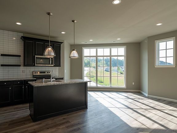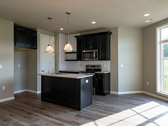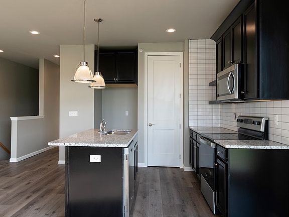 Move in Ready Today! Live in the center of it all at Hastings! Enjoy fun, food and fitness right on your block with restaurants, a brewery, yoga studio, free 24-hour fitness center and juicery just steps from your front door. This move in ready end townhome offers 1,258 sq ft of low maintenance living with 2 bedrooms, 2 bathrooms and an attached 2-car garage. A modern kitchen with large walk in pantry opens to the breakfast room and great room with a wall of windows overlooking Hastings Green. In the back of home is an Owner's Retreat with a large walk-in closet and private Owner's Bath along with a second bedroom, full bath, dedicated laundry closet and extra closet space. The lower level offers a spacious entry connected to an attached 2-car garage. This end townhome comes with espresso maple cabinetry, stainless steel appliances, granite countertops, tile kitchen backsplash, recessed lighting and much more.