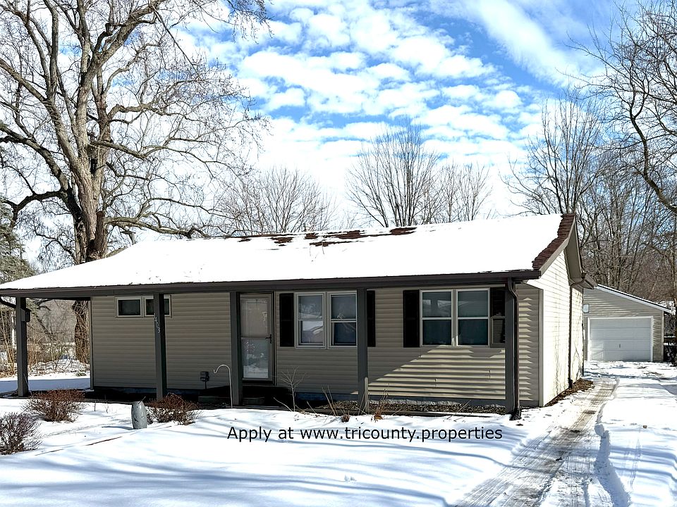 Great location just two blocks from the high school. Single family ranch home with a 2.5 car detached garage and unfinished basement. New vinyl plank flooring throughout. New trim and paint throughout. Basement is clean and dry. Large laundry room off of the kitchen. Walk in pantry. Tenant pays utilities. Pets are possible, depending on the type and breed. One year lease.