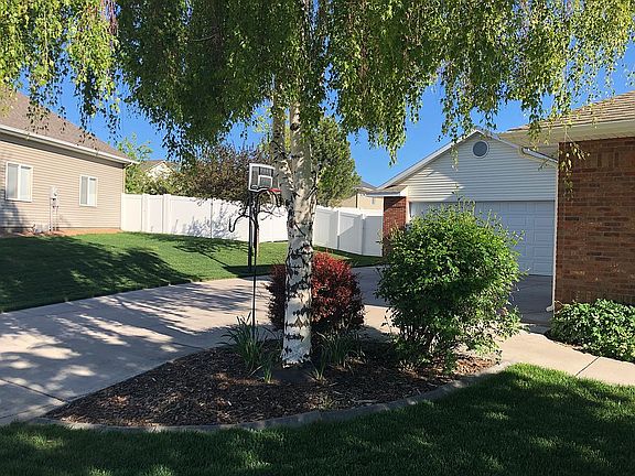 Beautiful and well maintained home located in back corner of a cal-de-sac. Custom built in 2002 with basement finished in 2005. 4 bedrooms upstairs and 2 bedrooms downstairs - bedrooms are good sized rooms. Formal living room with french doors into great room with vaulted ceiling. Office on main level floor. Two gas fireplaces - main level fireplace is granite with 3-way fireplace between kitchen area and great room. Basement gas fireplace is cultured stone with hickory mantel and built in book shelving. Main level laundry room, with built-in lockers next to laundry area. Kitchen has custom stained cabinets with island and dining room can accommodate a large family table. Newly remodeled granite countertops, tile backsplash and all new appliances. Kitchen and dining area have hardwood floors. Double oven and corner pantry area. Basement is wired for surround sound and has spacious area for additional gathering. Toy and game closet with playroom under the stairs. Water softener included and home has two 50 gallon water heaters. Large cold storage room and one additional room for storage area. This home has lots of storage! House property sits on 1/2 (.48) of an acre and yard is all grassed. Backyard is fenced with mature trees and landscaped. Sprinkler system and basketball court in back yard. 3 car garage attached to home with a 2 car, extra deep detached garage to park extra cars, boat, RV, toys and extra storage. Home is located in a great area with parks, walking paths, golf course, schools (Elementary and High School) and mountain biking within walking distance or just a 3-4 minute drive. Gorgeous covered patio | deck with seamless trex flooring and vinyl railing off kitchen with dimmer lights and blind system to block sun from two sides of the deck. Additional seating area in courtyard next to covered deck for barbecue's and gatherings.