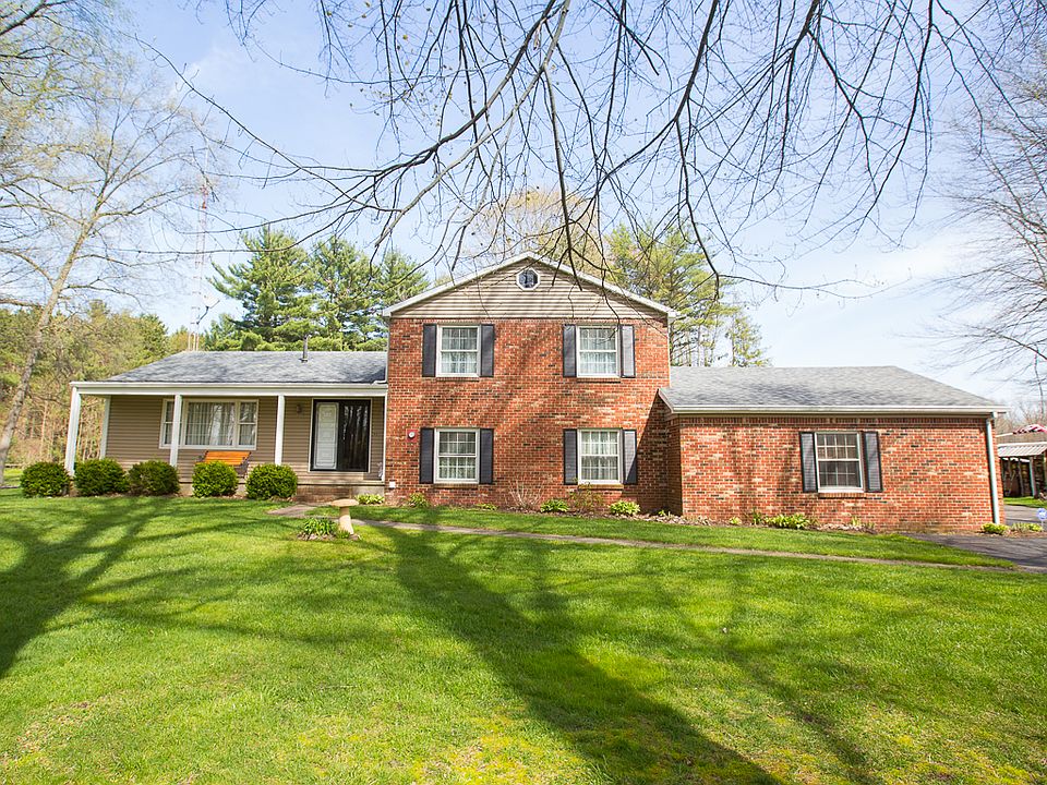 Beautiful, Secluded, Country setting on 5 wooded acres, with a barn big enough to have small business. Mostly brick home was built by owner, has over 2000 sq. ft. of living space, 3 bed with a possible 4th bed or extra living space. Part finished partial basement with workshop, 1st floor laundry, 3 seasons room off the family room, dining room with bay window. Some updates needed, HUGE POTENTIAL