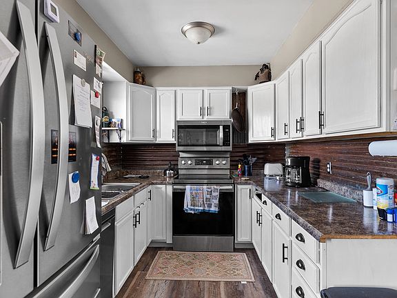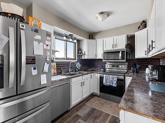Listed by Cheri St. Pierre, Realtor - Berkshire Hathaway HomeServices Midwest Realty. Immaculate and well-cared for multi-level home in a small Black Hills town! Inviting kitchen with heaps of white cabinets, plenty of countertop space, stainless steel appliances, and striking vinyl wood flooring that stretches into a dining room and sun-drenched living room. 2 great-sized bedrooms in the upper level, as well as a full bathroom. Sizeable master bedroom plus 2nd full bathroom on the lower level. The unfinished basement offers a plethora of options for storage and for building equity with a custom finish! Large deck overlooks a fenced-in yard that's over 1/4 acre with mature shade trees. Not far at all from school, hospital, restaurants, and all Sturgis has to offer, as well as the many activities of the Northern & Central Hills!