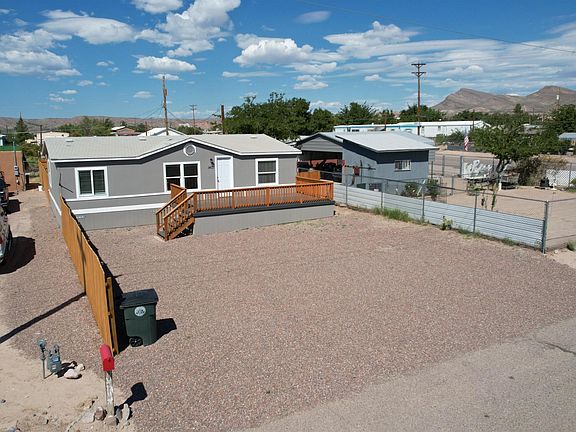 BEAUTIFUL 3 BEDROOM 2 BATH HOME LOCATED IN TRUTH OR CONSEQUENCES NEW MEXICO. NEWLY REMODELED IN 2023. WONDERFUL OPEN FLOOR PLAN THAT FLOWS FROM THE LIVING ROOM INTO THE FANTASTIC NEW KITCHEN AND DINING AREA. KITCHEN HAS WHITE SHACKER CABINETS WITH STAINLESS CABINET PULL KNOBS AND COMPLIMENTORY COUNTER TOPS, STOVE, MICROWAVE, AND DISHWASHER. MASTER BEDROOM ROOM HAS A NICE SIZE WALK IN CLOSET WITH SHELVING UNIT AND VERY LARGE AND BRIGHT BATHROOM. DOUBLE SINKS WITH AN OVERSIZE MASTER TILED SHOWER. YOU WILL ENJOY YOUR EVENINGS IN THE PRIVATE FENCED BACK YARD. HOME ALSO INCLUDES NEW REFRIGERATED AC, NEW HOT WATER TANK, A LARGE TREX DECK FRONT PORCH, AND MUCH MORE.