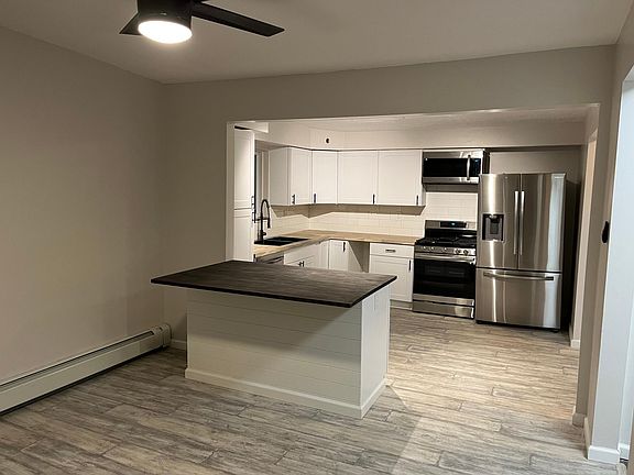 Completely renovated two-bedroom, two-bathroom ranch on a corner lot just minutes from downtown. Before going inside, you will immediately notice the huge yard space, part of which has been fenced in for your pups, the large patio in the back, the one car garage, the deck off the side, and the flat front that is perfect for little ones to play. Upon entering you will see an updated open kitchen fully loaded with stainless steel appliances, tons of cabinet space, brand new fixtures, and new butcher block countertops. The living room is sprawling and perfect for a sectional couch and large TV for entertainment. The top floor is finished out with two nicely sized bedrooms that offer ample closet space and a remodeled full bathroom. In my opinion the best part of the home is the finished basement which has 9 foot ceilings, new fans, new carpet, and another remodeled bathroom. Owner pays water. Tenant is responsible for all other utilities. Tenant is responsible for snow and ice removal and maintaining the lawn.