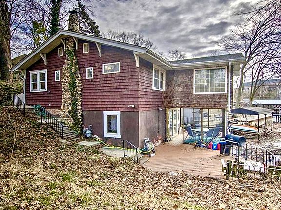 This Lake Decatur brick-front cottage sits at the end of a private inlet and overlooks the water. The sunroom addition has large windows for beautiful lake views. The lower level kitchen offers a glass door leading to a covered patio. Natural plantings surround the inlet for additional privacy. Great opportunity to purchase an entry-level lake home at a lower "winter pool level" price. You won't find a better deal on Lake Decatur with your own private dock! Get ready for boating season, as the spring lake levels will return soon! The home needs a little loving care from someone with handyman skills. Selling "As Is".