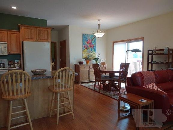 NEWLY LISTED TOWNHOME, EASTGATE LOCATION! No association fees here! Beautiful like new home built in 2006 with over 1200 sq. ft. of living space. This townhome has an open floor plan with wood floors, corner fireplace, nice sized oak kitchen with an island bar and a sliding door from the dining room to the deck. Master bedroom with 3/4 bath and walk-in closet. You will have everything on one floor with 2 bedrooms, 1 & 3/4 baths and main floor laundry. Nice sized lower level family room and a large storage room. The attached garage is 18' x 24'. Low utilities. Much bigger than it looks!