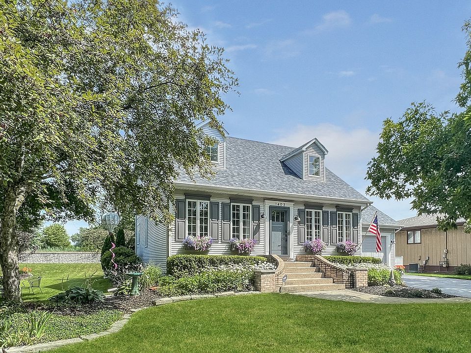 Welcome to 1403 River Dr., a sophisticated two-story home perfectly situated close to shopping, expressways, parks, and schools. This charming residence offers 3-4 bedrooms and 2 full baths. The versatile fourth bedroom on the main level can easily transform into a family room, dining room, or office-let your imagination guide you. The updated kitchen boasts quartz countertops, a Kohler workstation sink, and a six-burner GE Cafe stove. The custom-built eating area features a fold-open desk and storage under the window seat. Step out onto the spacious deck, where you can enjoy the shaded comfort of an electric awning while overlooking the yard. The main floor also includes a fully remodeled bath and a convenient laundry room. Upstairs, you'll find three more bedrooms. The primary bedroom features a walk-in closet with a clothes chute and access to a shared, remodeled full bath. The other two bedrooms are roomy, light, and bright, with the front bedrooms showcasing charming window dormers. The basement provides ample storage space, and the exterior landscaping is sure to impress. Welcome home to 1403 River Dr.!