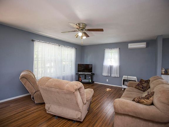 Hurry into this home, it won't last long! Enjoy 2 living areas, one up, one down. 3 bedrooms or make a 4th in the garage, it has 2 closets and a window, plus double door access to the outside. It is used as a garage for motorcycles, was a master bedroom at one time. You could convert it back to a garage with a garage door as well! Open floor plan is great for entertaining, newer paint, engineered bamboo wood flooring, cabinetry, and updated bathroom. The wall AC/Heating unit is brand new and very efficient. A propane heater also keeps the main level toasty! Large, mature yard completes the package!