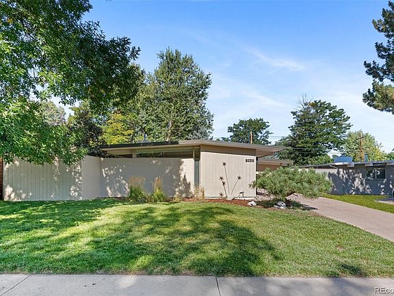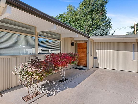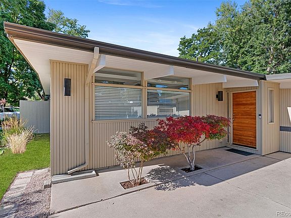 Welcome to this stunning mid-century modern home nestled in the Krisana Park neighborhood of Denver. Designed by renowned architect H.B. Wolff and owned by an artist and interior designer, this meticulously maintained residence offers a perfect blend of original floorplan charm and thoughtful updates. As you step through the handmade solid teak front door, you're greeted by the original hardwood floors and Italian porcelain tile. The spacious living room boasts floor-to-ceiling windows, filling the space with abundant natural light. A sliding door leads to the concrete lanai, creating a seamless transition between indoor and outdoor living spaces, perfect for entertaining or enjoying a quiet morning coffee. A gas fireplace, providing both warmth and ambiance during cooler evenings. The addition, thoughtfully integrated and designed by architect Stephen Barsh of Barsh Design offers modern functionality while preserving its mid-century character. The kitchen is warm and inviting, featuring Richlite countertops and Ann Sacks artisan crafted mosaic tile backsplash. The solid teak counter in the front bath and teak cabinet in the master bath add a touch of luxury and sophistication. This home offers practical amenities, including a new furnace, laundry/utility room, and a large hallway closet with built-ins for ample storage. Outside, you'll find a wood deck with a pergola, perfect for al fresco dining or relaxing in the shade. Additionally, a storage shed and shop/storage/gym room provide extra space for tools, hobbies, or potentially converting back into a garage or carport. Built in 1955, this mid-century gem exudes timeless style and elegance. Whether you're drawn to its architectural significance, the thoughtful design details, or the desirable Krisana Park location, this home is sure to captivate and inspire. Don't miss your opportunity to own a piece of Denver's architectural and design history in this one-of-a-kind residence. Schedule your showing today!