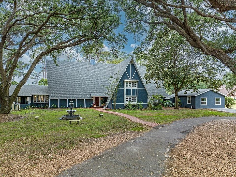 This beautiful private country farm estate is loaded with character This custom built home is tucked away down a private oak lined road with a deep creek surrounded by strawberry fields. Situated on ~5 acres, this property features an inground swimming pool, tennis court, circular drive, outside cabana, and much more. There are several barns/sheds on the property as well as a chicken coop and run. Cross fenced and ready for your animals! The cathedral ceilings in the Great Hall offer a grand common space with sunken seating around the fireplace, a Romeo & Juliet style balcony. There is a large cedar sunroom just off the Great Hall that makes a perfect family room overlooking the property. The spacious kitchen features a second dining area, oversized appliances, double oven, granite counters, and much more. The features of this home are endless including a bar area, laundry rooms on both floors, and even an attached apartment with a kitchenette and separate home entrance. A stunning master suite is located downstairs. The master bath offers a beautiful clawfoot soaking tub, a walk-in shower, and stunning farm house dual sinks. Upstairs, there are three additional bedrooms and two full baths. This home is truly a must see for someone looking for a unique home. A list of upgrades is available including a new roof (2023). This home offers the small town feel, secluded mindset, while being just minutes from I-4, Lakeside Village, and only 30 minutes to Tampa and 40 minutes to Disney.