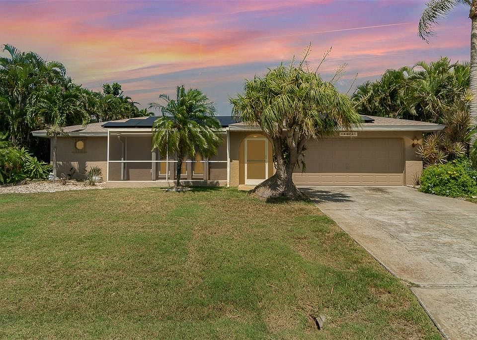 Don't miss your chance to own this incredible Solar-Powered Home (super LOW LOW Electric bills) and experience the ultimate SWFL lifestyle. Enjoy leisurely days by the large rebuilt pool while relaxing in total privacy, thanks to lush landscape while keeping out pests with super-screens on the front and back lanai. Step inside and discover a tastefully remodeled Home with a Living room and Formal Dining but then as you continue into this expansive home you will also find a Family Room with a Dinette space off the Kitchen! The Upgraded kitchen, is complete with Granite countertops, roll-out drawers, and a removable custom wine rack. The second bathroom doubles as a pool bath. Featuring a brand new refrigerator/freezer, washer, dryer, induction range/convection oven, and combination microwave/convection oven, ensuring all your inner chef needs are met. Feel safe with hurricane windows and/or shutters, and a garage door hurricane brace. The entire house was re-plumbed just 2 yrs ago, with a new breaker panel installed 3 yrs ago, and the electric system was upgraded in 2023. New Roof with Decking and Freshly Painted exterior and much more. No flood zone here!