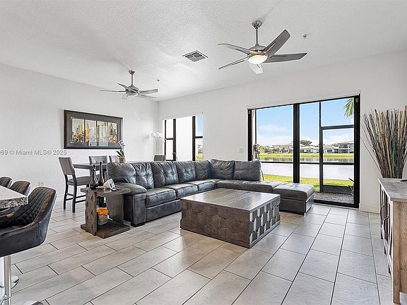 This spacious 3 bed, 2.5 bath lakefront townhome offers 2,097 sq ft, a 2-car garage, and is located in a gated community. Features include a paver driveway, granite kitchen with stainless steel appliances, and a private balcony off the primary bedroom. Walk-in closets have custom organizers, and the laundry room is upstairs. Impact windows and doors for hurricane protection. Bright, open layout perfect for entertaining. Enjoy resort-style amenities with a pool, clubhouse, and gym. Close to highways, shopping, and dining.