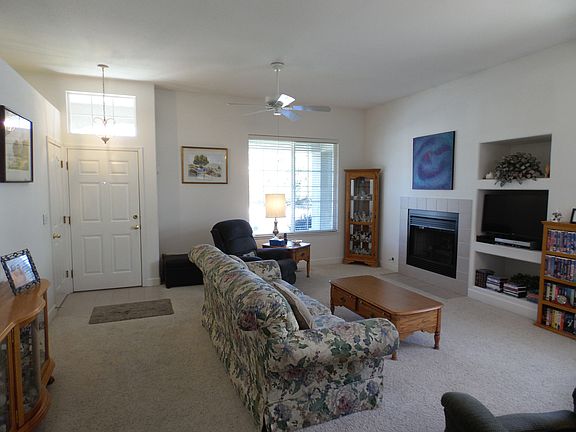 Gorgeous stucco home with a perfect split floor plan! This house is located in a great neighborhood and features a large kitchen with island and lots of natural light . It has high ceilings, a gas fireplace, A/C, vaulted master bedroom with slider to patio.