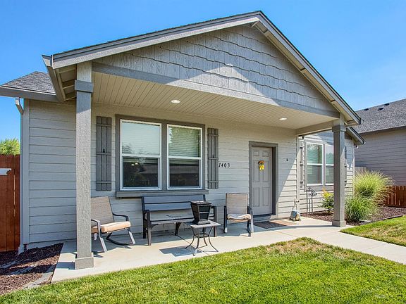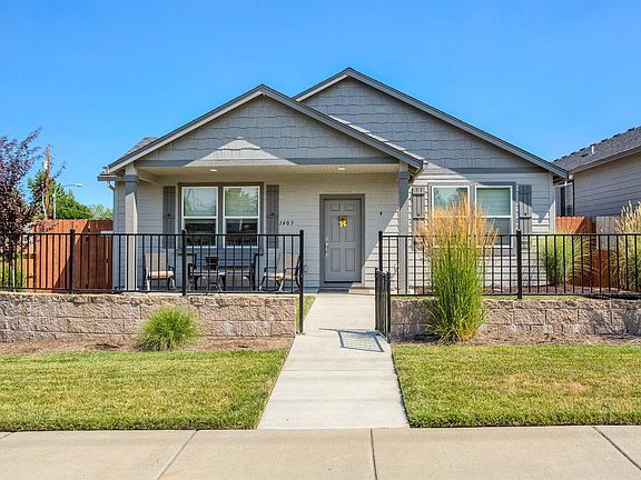 Gorgeous, newer construction home in desirable East Medford location. Move in ready. Front door leads to a good-sized living room that opens into a large kitchen via tasteful archways and a door. The kitchen has lovely, rich-toned wood cabinets, solid surface counters, a gourmet cook's island and a nook that serves as the perfect office space. Home amenities include a huge pantry, designer blinds, corner gas fireplace in LR, ceiling fans, pendant lighting, AC, natural/modern color palate with bright white trim throughout, bedrooms with oversized or walk in closets, a master bath with dual sinks/tile backsplash, large laundry area, huge garage with extra parking in alley-access driveway, a fenced yard and a firepit. The house is situated on a corner lot with plenty of parking and extra privacy.