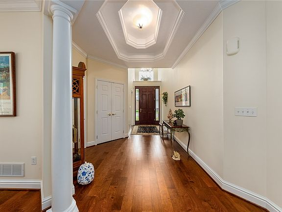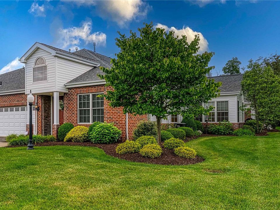 Beautifully appointed carriage home in Adams Crossing. Enjoy one level living and a maintenance-free lifestyle. Soaring 16' entry into the open floor plan. Coffered ceiling in study, double tray entry hall ceiling, gracious powder room with 48" vanity. Dining room complimented with "bump out bay window" and crown molding. Huge center island kitchen with silver and gold granite countertops. Solid cherry cabinetry throughout home. Heated ceramic floors in kitchen and solarium. Two story great room with custom built-ins, bar cabinetry, and library loft. Generous storage throughout with attic space above second floor. Finished garage floor.