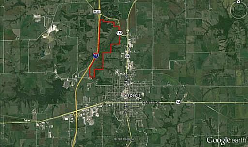 418 acres m/l of contiguous Clarke County farm ground located adjacent to Interstate 35 on the northwest side of Osceola. Farm consists of 255.78 DCP crop acres per the Clarke County FSA office. Currently farming 183.65 acres carrying a 36.1 CSR. Approximately 70 acres fenced for pasture that has been fertilized annually with two small ponds. New fence built in 2007 along interstate. The rest of the fences are in average condition. Balance of land in timbered draws and rolling hills making this an excellent hunting farm with large deer and turkey population. Improvements include an A-Frame house on the south side of farm with 3 bedrooms and 2.5 baths, as well as a 76x56 building and two silos. Rural water on property which supplies Ritchie cattle waterers. Large fenced area for catching cows. This is a great combination farm with tillable, pasture and recreational opportunities and great access to Interstate 35.