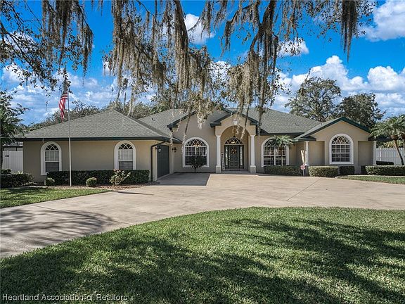 SELLERS WILL STILL ALLOW SHOWINGS TO QUALIFIED BUYERS ONLY AND THEY WILL TAKE BACK UP OFFERS UNTIL CONTINGENCIES ARE MET. Contemporary Custom Built Pool Home located near Avon Park Lakes and one block from Lake Lillian. The home was built by Hornick Homes. The gorgeous foyer boasts a lovely inlaid tile area which leads to the living room with tile inlays and it overlooks the large pool area and is accessible to it by recessed sliding doors. The beautiful custom window treatments trim the home out nicely. There are 10' ceilings in the main living areas and the home has a three way split floor plan. The formal dining room is adjacent to the living room and kitchen. This home has it all with 4 bedrooms 3 bathrooms and a half bath used as a pool bath. The pool bath has a large closet area that could be made into a shower, however there is a pool shower directly outside the sliding door on the pool deck. The 4th Bedroom area near the rear of the house adjacent to the family room has its own full bath and can be closed off with a pocket slider so this would make a perfect In Law or Guest Suite. The Office/Den at the front of the house has a closet so if needed could be used as a 5th Bedroom and lovely French doors lead into the room. The house is open and airy with large handicap accessible hallways throughout. The spacious Kitchen has cabinets galore, recessed lighting and a built in oven with GE electric cooktop w/downdraft replaced in 2022. This kitchen has tons of counterspace including an island with a newly replaced top. The walk in pantry has many shelves for your storage. The oversized family room has coffered ceilings and a tile inlay pattern on its flooring is adjacent to the kitchen & sliding doors lead to the spacious caged screened pool area. In addition, the kitchen & breakfast nook with Transom Windows overlook the pool area also which make the home feel so open. The Master Bedroom has coffered ceilings new carpet installed in 2022 w/ 8# padding it overlooks & is accessible to the pool area w/recessed sliding doors. The Master Bathroom Suite is oversized & has dual vanities + a dressing table, water closet for toilet, Linen Closet & a Garden Tub w/ Frosted Glass windows for privacy. It also has a chair height toilet & grab bars in the master shower. The hallway leading to Master Bath has 2 large walk in closets. One wing of the home has two bedrooms & one full bathroom w/ hallway connecting to the 4th bedroom/in law suite which has its own full bathroom. The rear yard is fenced with 6' white vinyl privacy fencing & the yard is 0.40 of an acre. There is a 10'x12' Smith Built shed as well as an irrigation system on its own well with a timer. The 15' x 30' sparkling pool is very spacious with a 36'x41' screen in deck area recently painted. There is 5'x19' side screened area for pool equipment and other uses. The Baby Guard Pool Safety Fence is included. The Pool heater not being used at this time but works.
