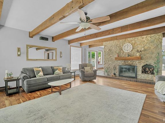 Back on Market-NO FAULT OF SELLER!! Their loss is your gain! Opportunity is knocking-time to make your move! Just what you have been waiting for! A huge beautiful home to make all those wonderful family memories in! Over 3100 sq ft, 4 large bedrooms, 2 full bath, gorgeous living room with big wooden beams and wood burning fireplace that opens to the dinning room which has it's own gas log fireplace, sliding doors to your fully fenced in backyard and has an open floor plan into the kitchen! The kitchen is full of beautiful white washed cabinets and has a built in desk area! Just off the kitchen is a huge room perfect for hosting parties, crafting, hobby space, laundry area, mud room, or art space! There is a 2 car attached garage as well as a 30x24 pole barn that is only 3 years old! Roof and Gutters were new in 2016, furnace is 2015, vinyl wood floors new in 2018! Master bedroom is fit for a king! The room is 27x12 and has it's own fireplace, his andf her closets, and the master bath has many new updates as of 2023! Be sure to take a seat in the peaceful backyard and enjoy the view!