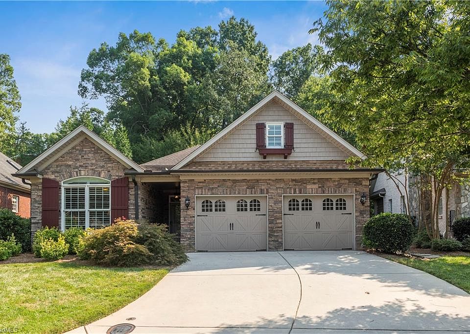 Stunning Ranch style home minutes from Friendly Center! All Brick & Stone exterior with excellent attention to detail inside and out. Chef's kitchen with gas cooktop, Stainless appliances & granite opens to spacious dining room & living room with skylights. Private brick patio, Impressive main level suite with huge walk-in closet. Plantation shutters with tons of upgrades throughout this impressive home. Finished bonus room above garage. Lawn maintenance, pool, fitness center and clubhouse included in HOA. Very popular location. A Must See Property!! Move in Ready!