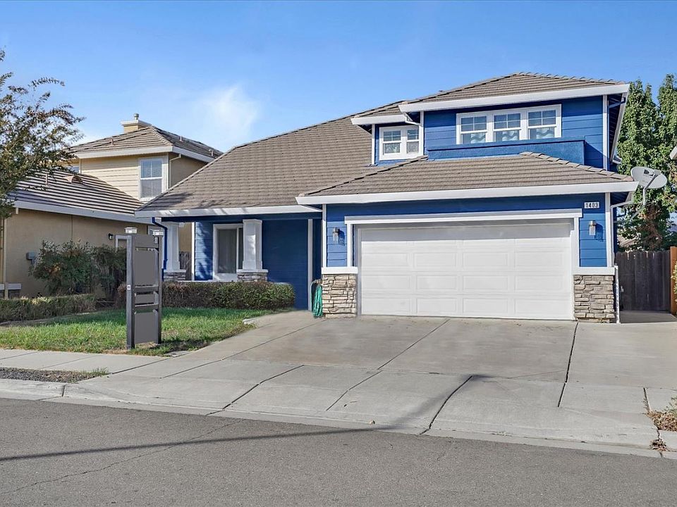 Price refresh! Spacious & beautiful vaulted ceiling move-in ready home with tons of natural light. Come experience this two story, open concept floor plan home with granite counters, crown molding, stainless steel appliances, bright interiors, new hardwood floors & fresh interior/exterior paint. A perfect space for a growing family in this 4 bedroom 3 bathroom space with a formal living room & 2 dining spaces perfect to entertain. Additionally, two bonus rooms, providing the flexibility to transform them into additional bedrooms, a game room, or office space, catering to your specific needs. Enjoy a primary suite retreat with its own separate tub & shower stall with a rainshower head, dual quartz vanity, & custom shelves in the walk-in closet. Next a 2-car finished garage, with a low maintenance concrete landscaped backyard. Situated in a quiet and peaceful neighborhood close to walking & biking trails, schools, parks, shopping malls, w/ easy freeway access & close to the BART. Do not miss out on this great property with no HOA!