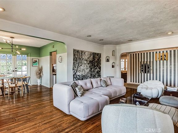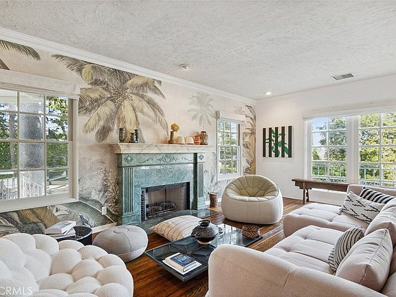 Perched on a hilltop this artist owned charming South of the Boulevard Sherman Oaks open floor plan pool home is full of character and warmth. As you enter you will be taken back by the light from the windows throughout while still retaining privacy. The home beams with pride of ownership featuring 4 bedrooms, hardwood floors and gas fireplace highlight the living room which opens to the dining area creating a magnificent entertaining home. The kitchen has granite counters and custom cabinetry and open to the family room which has French doors to a patio area with stone detail and waterfalls. Some of the custom details include low maintenance drought tolerant landscaping, primary bedroom with his and hers bathrooms, walk-in cedar lined closet, beveled glass windows throughout, coffered ceilings and so much more. Interior design by Dane Jensen and Omayra Alvarado-Jensen.