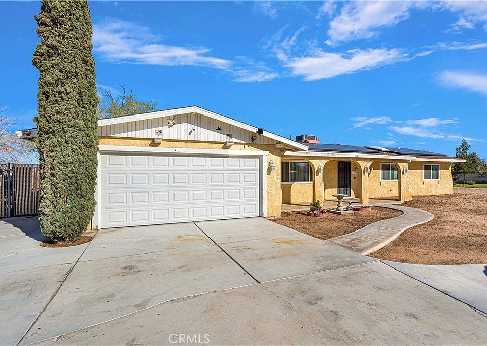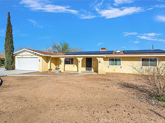 Welcome to your new "HOMES" in Apple Valley! Yes that's correct "2 HOMES" on 1 lot in Apple Valley! If living space is what you need this home has it all plus more. Main Home is 1863 sq. ft. with 3 bedrooms, 2 Baths, Living Room, Family Room, Dining Room, Kitchen, indoor laundry room, "AND" an additional Bonus Room that can be used as an office, den, game room, guest room, or what ever else may suit your family needs. This home has wood laminate floors in all the main living areas with carpet only in 2 bedrooms, and tile in the Master Bedroom and both bathrooms. Kitchen has granite counter tops and freshly painted. Newly installed windows throughout make this home energy efficient as well. 2nd Detached Home is over 850 sq. ft., which includes Living Room, Kitchen,1 bedroom, 1 bath, Indoor laundry, and a bonus room that can be used as an office, den, or a hobby/craft room. Both the Bedroom & Bonus room have French Doors that lead out to the Covered Patio area. 2nd home is fully electric so no bills for Gas or Water. So much living space in these homes with over 2700 sq. ft. combined! Moving on to the property which is almost 1 full acre WOW! Included are 3 sheds, a huge carport/storage area that can be fixed up to suit your needs, fully fenced property and crossed fenced. Need room for an RV, Boat, or Off Road Vehicles? Well here you have it with plenty of land to fit your outdoor activity storage needs. Also, last but not least is your Solar System. Both homes are connected to the solar system for your energy saving needs. This home is a package that has it all with endless possibilities to fit your specific needs. Make your appointment today for your private viewing!