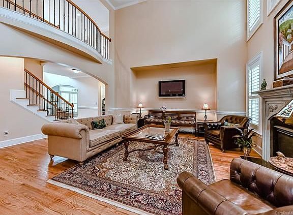 STUNNING 2 Sty Brick w/ walkout bsmt, 5 bdrm, 4 ba Home in the heart of Ballantyne, Bridgehampton. In sought after "The Estates" section in NC. Bright & airy, this Columbia model boasts hdwd fls on main, guest bdrm with full bath, open kitchen, 2 story foyer & great room. plantation shutters. 2nd floor huge master w/office off vaulted master bath, spacious bdrms w ba, lg laundry rm! Partially finished basement with family rm. Screened Porch overlooks private wooded fenced lot. 3 Car Garage.