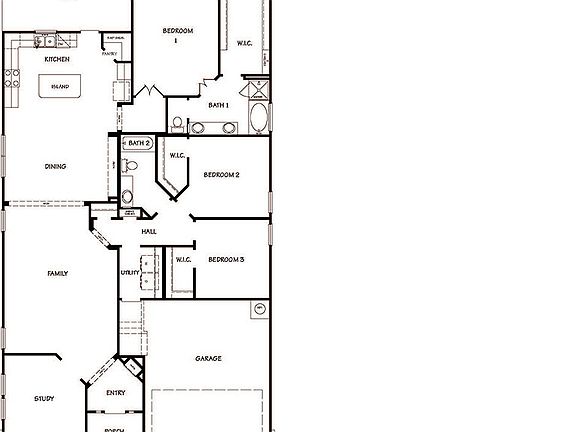 The Driftwood is a single-story, 2050 square foot, 3 bedroom, 2 bathroom, layout. This large single-story was designed to provide any family with a spacious and comfortable living space. The inviting entry leads to a separate office area and spacious living room. Off the living room is the utility room, full bath and two secondary bedrooms with walk-in closets. The living room opens to a large dining area and an eat-in kitchen with beautiful granite countertops, stainless steel appliances, and a large island workspace. The kitchen space extends to a covered outdoor patio (per plan), perfect for outdoor gatherings. A private hallway leads to the main bedroom which includes a spacious ensuite bathroom, complete with dual vanity sinks, walk-in shower, separate garden tub, and walk-in closet. You'll enjoy added security in your new home with our Home is Connected features. Using one central hub that talks to all the devices in your home, you can control the lights, thermostat and locks, all from your cellular device. Additional features include tall 9-foot ceilings, 2-inch faux wood blinds throughout the home, pre-plumb for water softener loop, full yard irrigation, Radiant Barrier Roof decking, 2+ car garage per plan, and more!