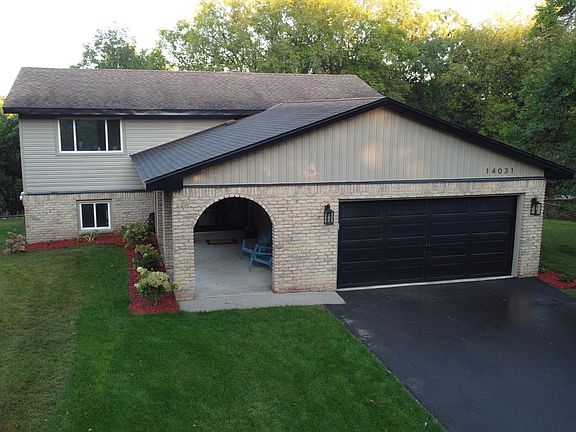 A large attached finished garage with an automatic opener and a detached finished garage with built in shelving and electricity offer ample parking and workspace, while two storage sheds provide additional storage options. Located in Elk River with convenient access to amenities like Elk River Golf Club, commuter routes, and just minutes from Elk River High School, VandenBerge Middle School, and Lincoln or Parker Elementary Schools.