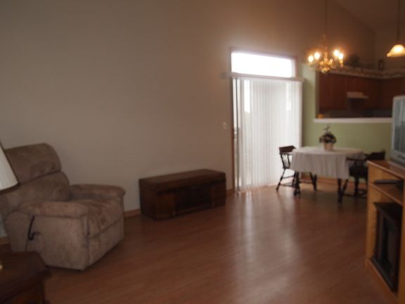 TRUE!! 2 Bedroom RANCH townhome! End Unit on a Cul-de-sac! Wood laminate flooring in the Living Room-Dining Room and Kitchen! Vaulted ceiling! Neutral decor! Entertainment center and Fireplace! All appliances stay! Including washer & Dryer! Front porch with wood railing! Large 2 tiered deck! Near shopping and expressways! Call today!