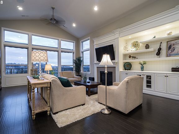 This modern, home atop nearly a half-acre of pristine land features five opulent bedrooms, four full baths and two half-baths. The delightfully landscaped, fenced and sun-kissed backyard faces south, and the upper and lower decks offer easy access to the sports court and outdoor living space. Three water features one in the front and two in the back. Tarnahan Court is the pinnacle of luxury living. With a gourmet eat-in kitchen, a beautiful dining and piano room, and a spacious den with built-in cabinetry and three work stations, this home’s gorgeous, open floor plan seamlessly blends elegance and convenience. This exceptionally well-made home has two separate air conditioning units and furnaces for fine-tuned climate control, as well as a central vacuum system and vacu-pan in the kitchen. It also features three fireplaces and a Sonos speaker system in each room. This luxury house’s exquisite hardwood floors, three-car garage, and top-of-the-line appliances make it the perfect place to call “home,” located just minutes from I-205 and I-84 across the river from downtown Portland. The kitchen features professional-grade equipment, including Thermador appliances, a built-in refrigerator and a handcrafted wood range hood. Six gas burners complemented by a grill, a massive granite island with a sink and several cubic feet of storage inside, and a chef’s pantry with refrigerator and icemaker hook-ups combine to make the kitchen a culinary paradise. Featuring quartz side counters, an under-cabinet microwave for convenience, a pot-filling faucet above the stove and a beautiful array of hanging and recessed lighting, this designer kitchen is modern and elegant. spacious bedrooms, with the master on the first floor. The master bedroom’s dual fireplace makes it a peaceful escape at the end of the day, and its incredibly large closet serves as the home’s second laundry space; it features deluxe built-ins, space for a full-size washer and dryer with hook-ups, and a built-in ironing board. Two of the home’s generously sized bedrooms connect to a Jack and Jill bath featuring double sinks, and each room has beautiful views overlooking breathtaking scenery. Each bedroom has a ceiling fan, two are en-suite, and three feature built-in desk areas and cabinets. https://my.matterport.com/show/?m=UiZDWmBV18G