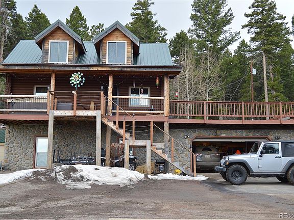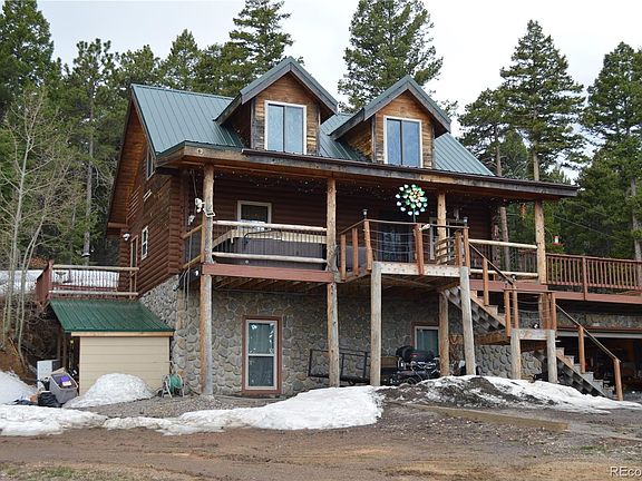 Incredible views await you with this rustic log cabin situated on nearly 40 acres! The Breathtaking views will warm your heart and soul as you look out above the towering pines above Waterton Canyon to the Platte River, Chatfield Reservoir and even city views below. The log cabin with newer windows features a bright and open floorplan with a wonderful loft/bedroom area with a retreat area, vaulted ceilings and can be easily split into 2 bedrooms. The main floor bedroom makes a great study and the lower level has a cozy family room with wood burning stove plus an additional bedroom and bathroom. There is also an oversized 2 car garage and an amazing deck to enjoy the views and privacy of this secluded mountain home. There is lots of storage space from the shed to wood storage or even livestock. Be one with nature and enjoy spending time with abundant space to roam on the bike and 4 wheeler trails, then relax and appreciate the fresh mountain air, abundant wildlife and even an Artisan well. This sportsman's paradise is great for hunters with permits available for Deer, Elk and Bear plus a designated shooting area. This property is partially fenced and has gated access.