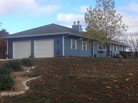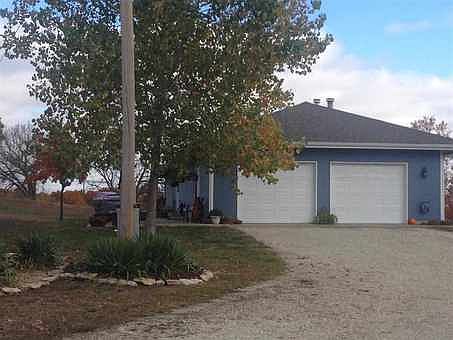 Beautiful home located on a country setting, just south of HWY 24 2 miles. Sets back on the north end of the property with and excellent wind break to the north and a great tree line to the west. The house is selling with a $4000.00 carpet allowance. The kitchen and eating area is open with custom cabinets. Three bedrooms on the main floor and one located in the basement. The basement has a bar and wood burning stove. Also, the basement is a walk out. Attached is a two car garage as well as an over sized detached garage, insulated with a wood burning stove.
