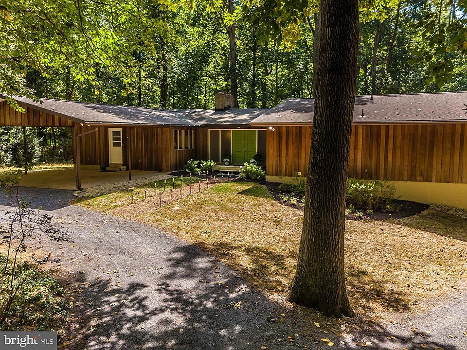 Sweet contemporary in the woods.   Genuine mid century modern features with current style and updates highlight this home that offers 2 levels that each offer one level living.     Gleaming recently refinished  hardwood floors throughout main level, brick walled fireplace in great room, new Anderson Renewal sliders to a deck overlooking acres of tranquil wooded area.  Spacious eat in kitchen with island can be updated or retained in its mid century glory.  A laundry room is conveniently located on the main level off of the kitchen area.  The primary suite offers a glorious walk in closet, sliders to deck and an ensuite bath with new tiled shower.  Two additional bedrooms and full hall bath complete the main level.   The lower walkout level is beautifully finished as an in law suite.  Up to date, stylish cabinetry in the kitchen and bath brighten the space.   A generous  great room with masonry fireplace , a spacious main bedroom and an office/exercise/bedroom and separate laundry room complete the in law area.  It is topped off with fresh paint and neutral carpet.  In addition, there is unfinished storage and utility space.  The home was recently painted throughout.     The location in an area of fine homes and schools which at this price,  make it a special opportunity.  Minutes to shopping and restaurants and easy commute to DC or Baltimore, Ft Meade and Columbia.