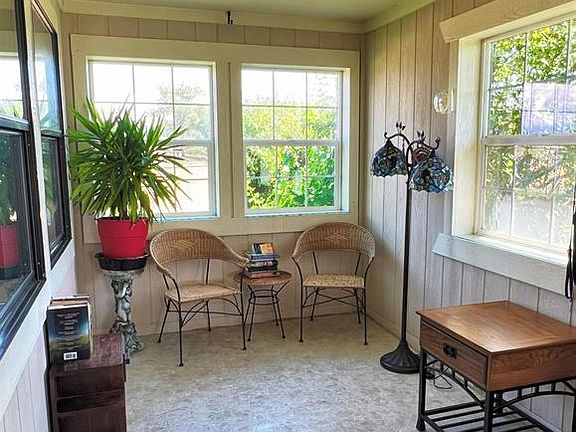 Easy country living on 1/2 acre, fully fenced, with mature landscaping! Well maintained 3 bedroom/2 bathroom ranch-style home with large office/den! Enter through a covered front porch leading into a generous mud room that doubles as a sun room! Open living/dining/kitchen with wood burning stove, wet bar, and a freshly redone kitchen featuring cherry wood cabinetry, stone backsplash, and granite countertops! The hallway leads to 3 bedrooms, including a primary suite with en-suite bathroom! Office/den has a separate entrance to the park-like back yard and access to the one car attached garage. Outside you'll find a fantastic entertainers & grilling deck, lush landscaping with a variety of Chardonnay, Merlot, and Hinsdale grapes, several fruit trees, various roses, lilacs, raspberry bushes, fenced garden, and a separate fenced dog run! Multi-level wood deck leads to a beautiful 12'x14' gazebo and garden shed with it's own deck and electricity! Located only minutes to town! This won't last long!