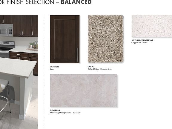 he useful first-floor den makes a great office, while the covered back patio is perfect for afternoon BBQ. Slate cabinets with white-toned quartz countertops, marble-look tile flooring with dark gray tweed carpet in our Balanced package.
